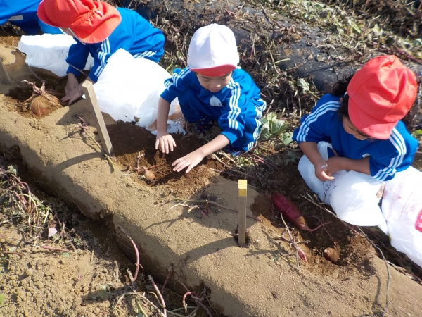 大きなおいもをいっぱい掘ることができました!!「ぼくのかおよりおおきい!」「つながってる!」「へびみたいなおいもだった!」と大興奮でした(^o^)食べるのが楽しみですね~。